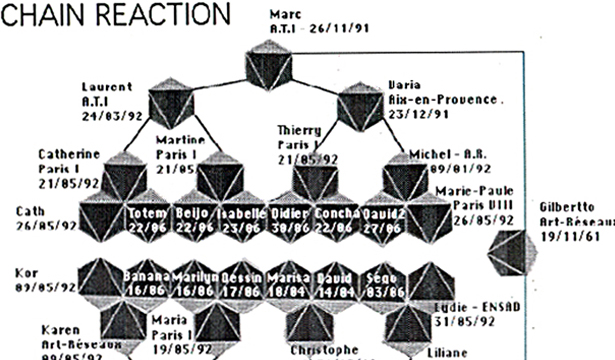 Paris entre novembro de 1991 e julho de 1992. Os participantes eram artistas, professores e estudantes de diferentes universidades e escolas linkados pelas redes de telecomunicações.