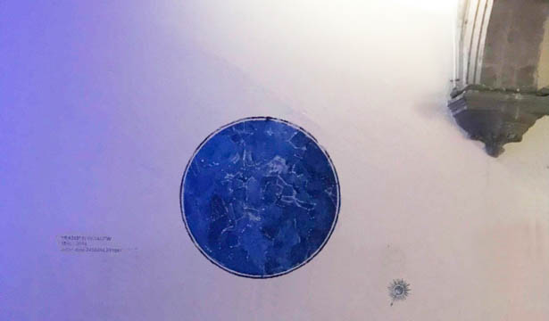 Impressa diretamente na parede, Circuito Celeste no que diz respeito ao título faz referência aos códices mexicanos, manuscritos das grandes civilizações pré-coloniais com relatos que registraram a história, a ideologia e a alma dos povos ameríndios. Um desses códices foi transcrito para os colonizadores sob o título “Los templos del cielo y de la oscuridad: oráculos y liturgia”. Aqui modificamos o "templo" por "tempo" no antigo Convento de San Diego (atual LAA) diante do qual se instalou o aparelhamento da Igreja Católica, e o seu Quemadero.