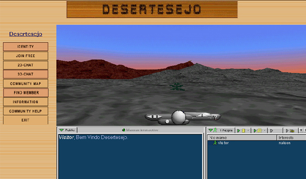 O projeto é um ambiente virtual interativo multiusuário construído em VRML que permite a presença simultânea de até 50 participantes.